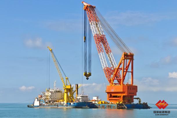 图为yl6809永利皇宫海南东方海上风电项目单桩基础施工